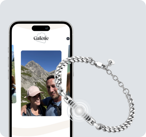 Verbinde dich mit deinen Liebsten. Mit unserem NFC-Schmuck kannst du deine Lieblingsmenschen ganz einfach auf eure gemeinsame Seite einladen. Teilt eure schönsten Erinnerungen und Momente miteinander – und das alles vollkommen privat. Jeder, der ebenfalls ein Schmuckstück hat, kann ganz einfach hinzugefügt werden – und ihr könnt gemeinsam auf eure wertvollen Erlebnisse und Momente zurückblicken.
