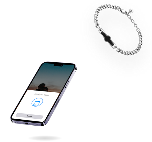 NFC, kurz für "Near Field Communication" oder auf Deutsch "Nahfeldkommunikation", ist eine drahtlose Technologie, die die Kommunikation zwischen Geräten über kurze Distanzen ermöglicht. Du kannst dir NFC wie eine unsichtbare Brücke zwischen zwei Geräten vorstellen, die sehr nahe beieinander sind. Unsere Schmuckstücke sind mit passiven NFC-Chips ausgestattet, welche keine externe Stromquelle benötigen; das heißt, sie kommen ohne Laden, Batterien oder Akkus aus. Zudem geht von den passiven Chips keine Strahlung aus. Sie ziehen ihre benötigte Energie aus dem elektromagnetischen Feld, das von einem aktiven NFC-fähigen Gerät (deinem Handy) erzeugt wird, sobald dieses in die Nähe kommt.